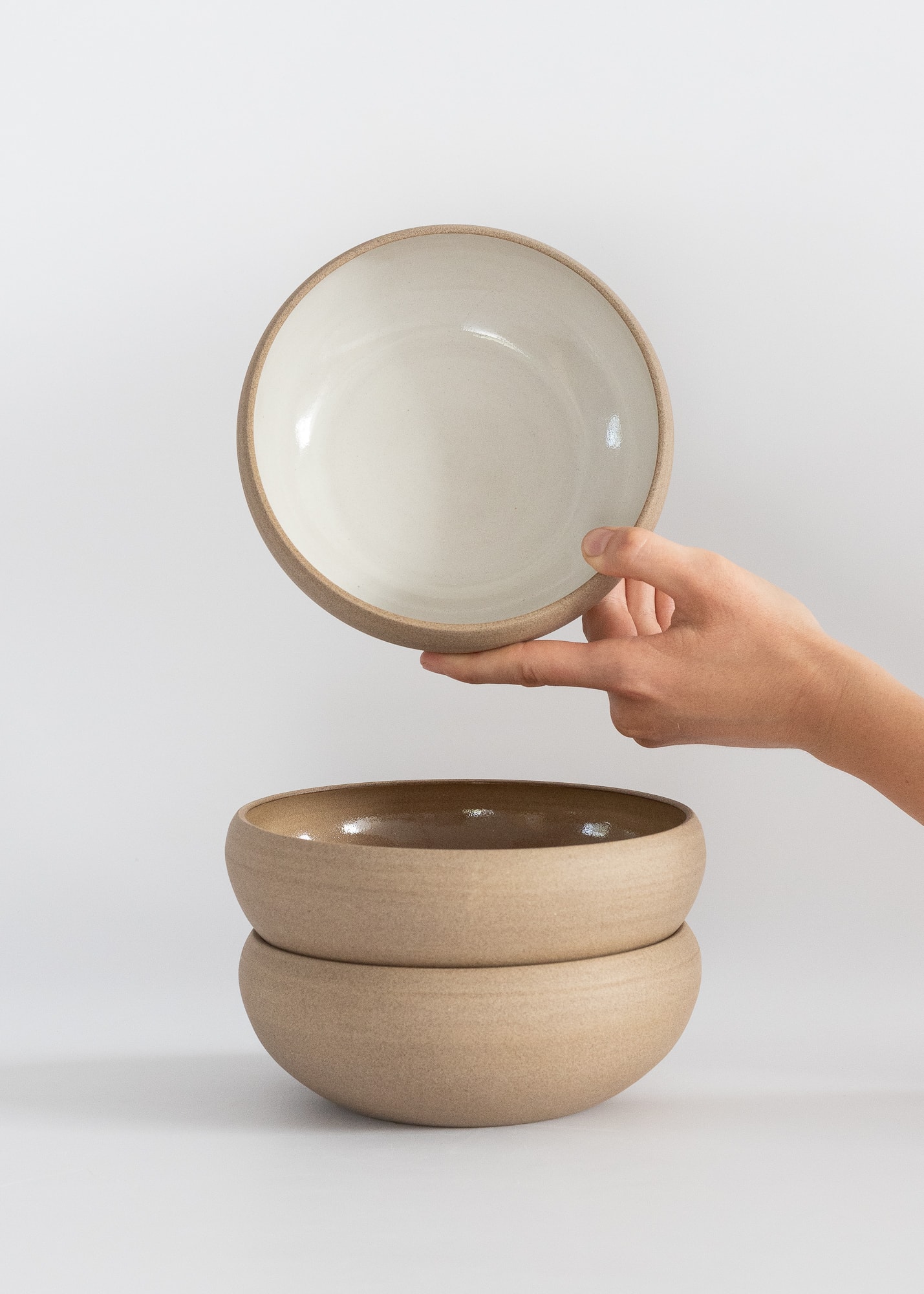 Inside: brown, beige or white glossy food-safe glaze.