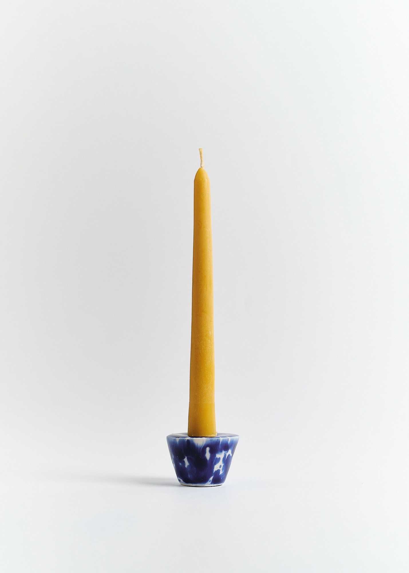 White porcelain candlestick with cobalt splashes.