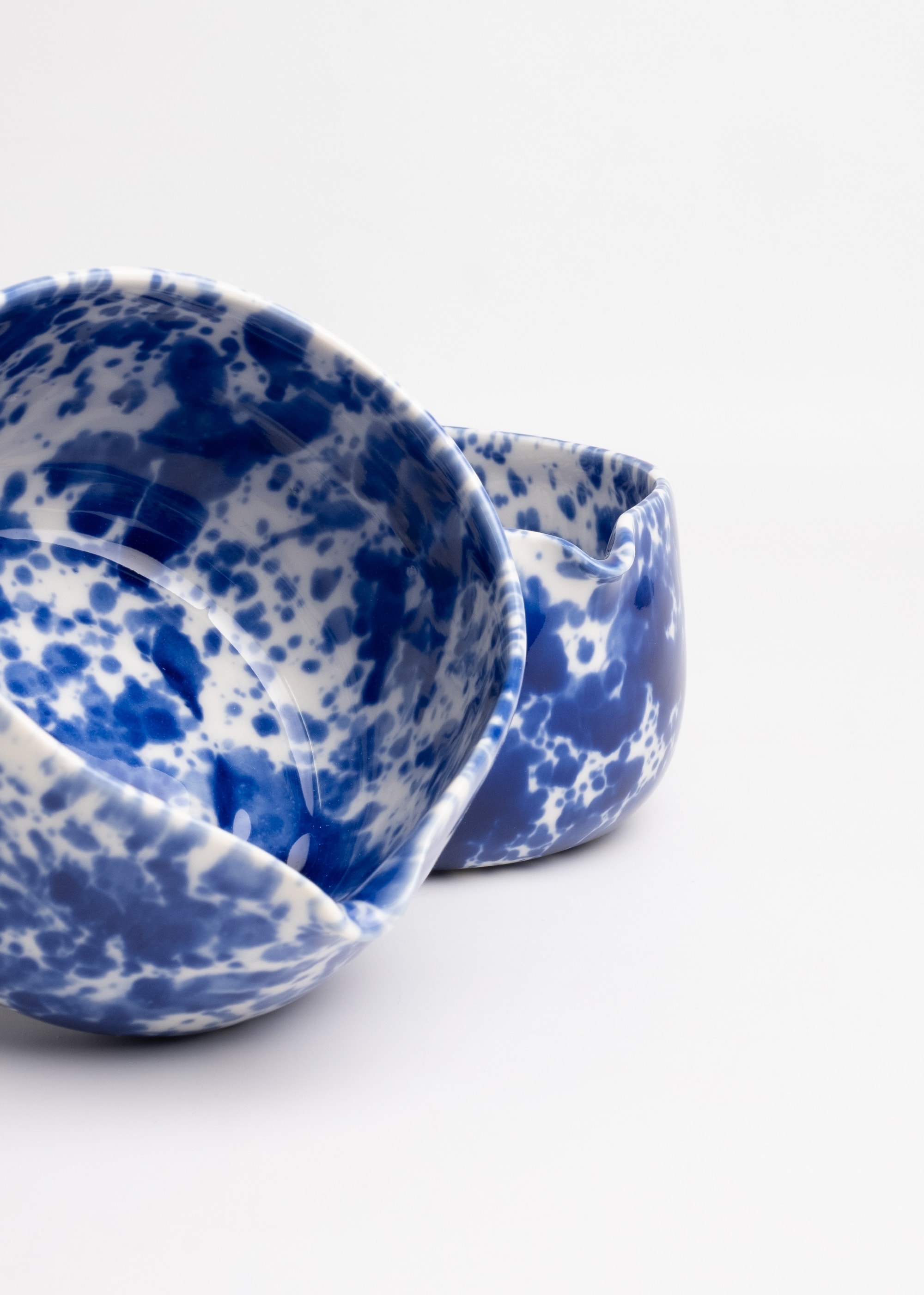 Cobalt splashes ceramic matcha set made with porcelain. Choose between the full set, matcha cup, matcha bowl with spout and whisk holder.