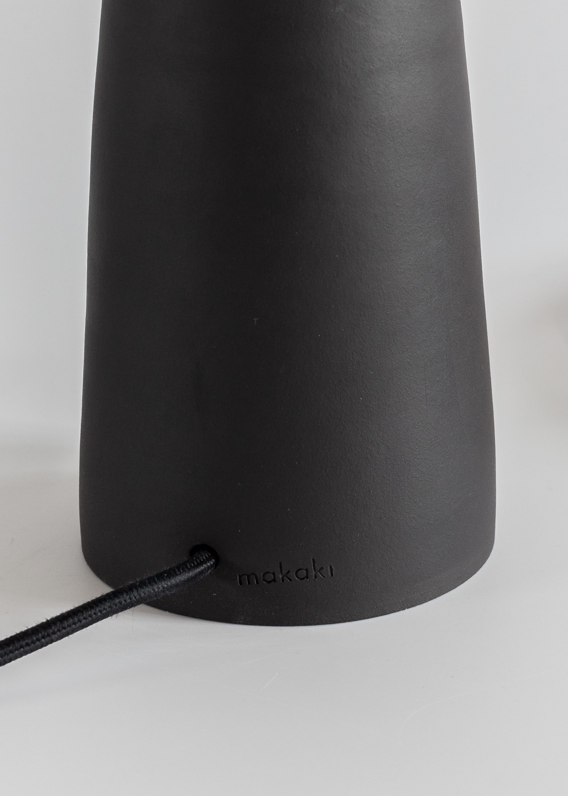 Lamp base is made of black stoneware clay on a pottery wheel.