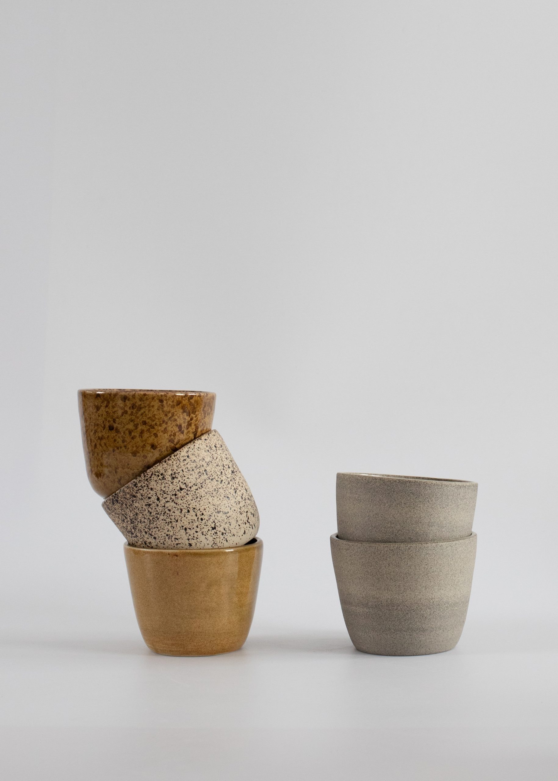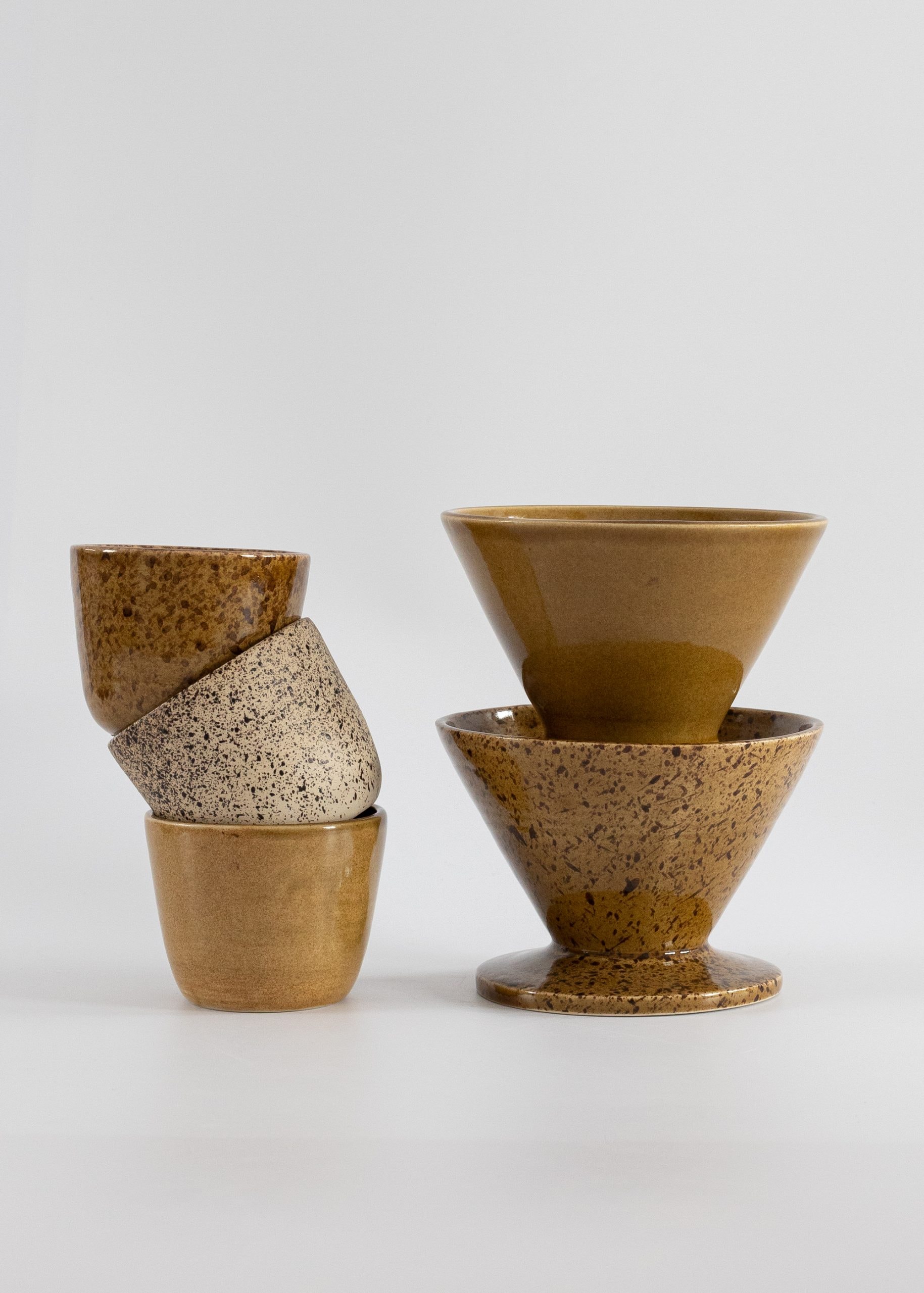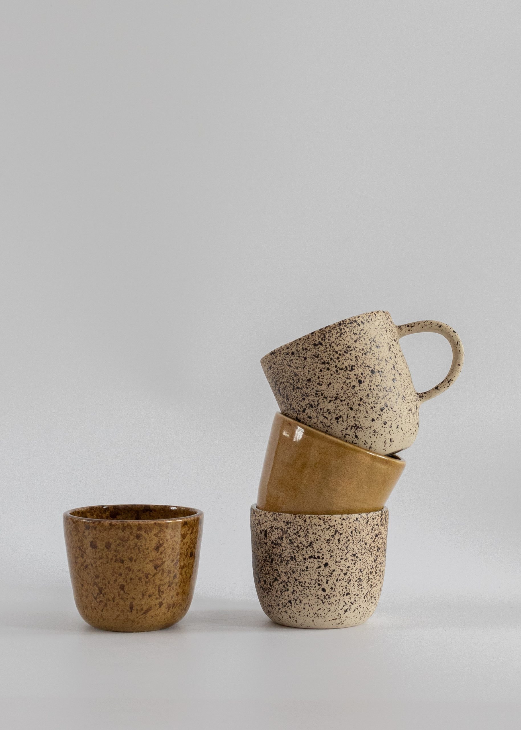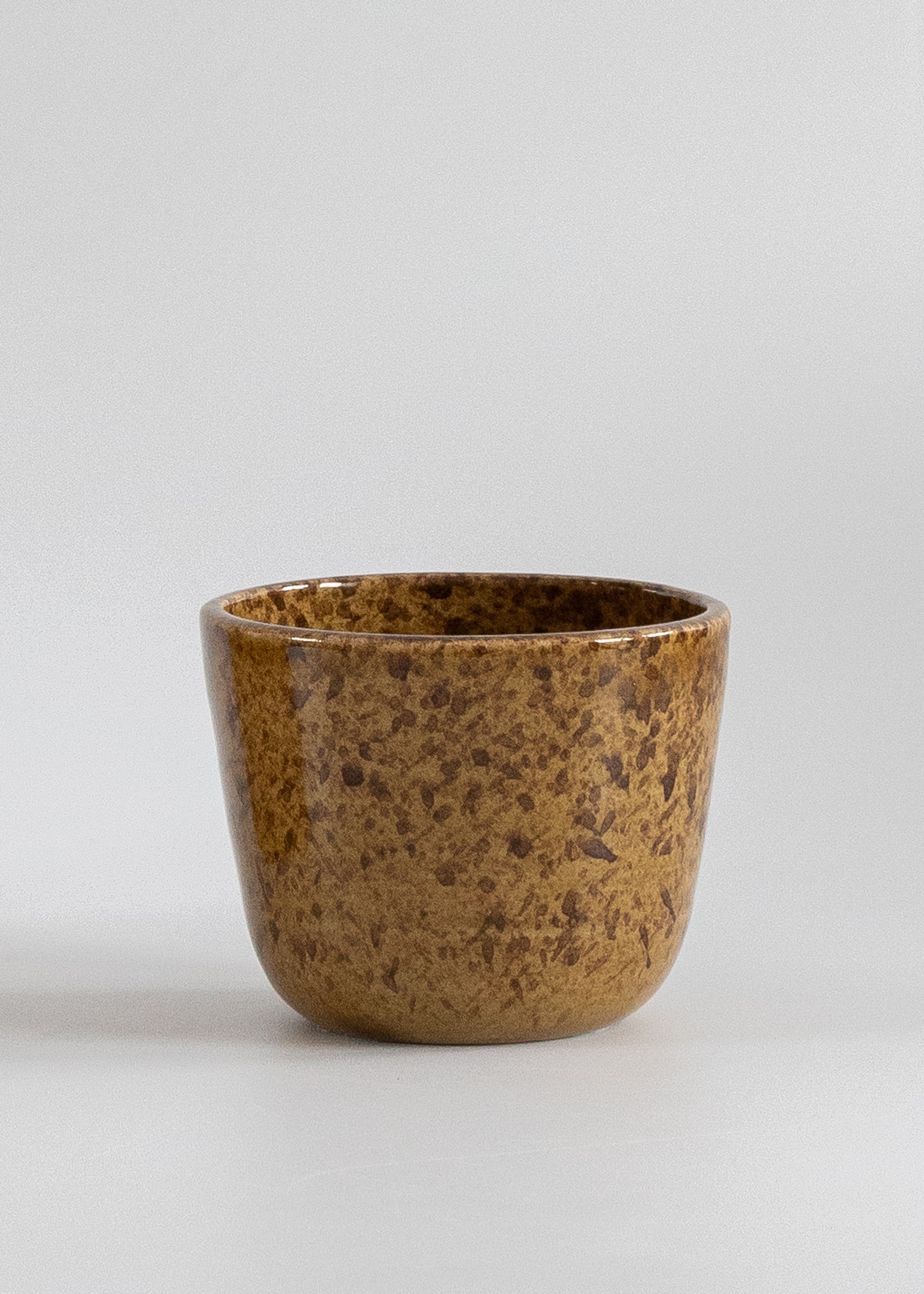 Miodowo-brązowa czarka z kamionki (wersja z nakrapianym wzorem).