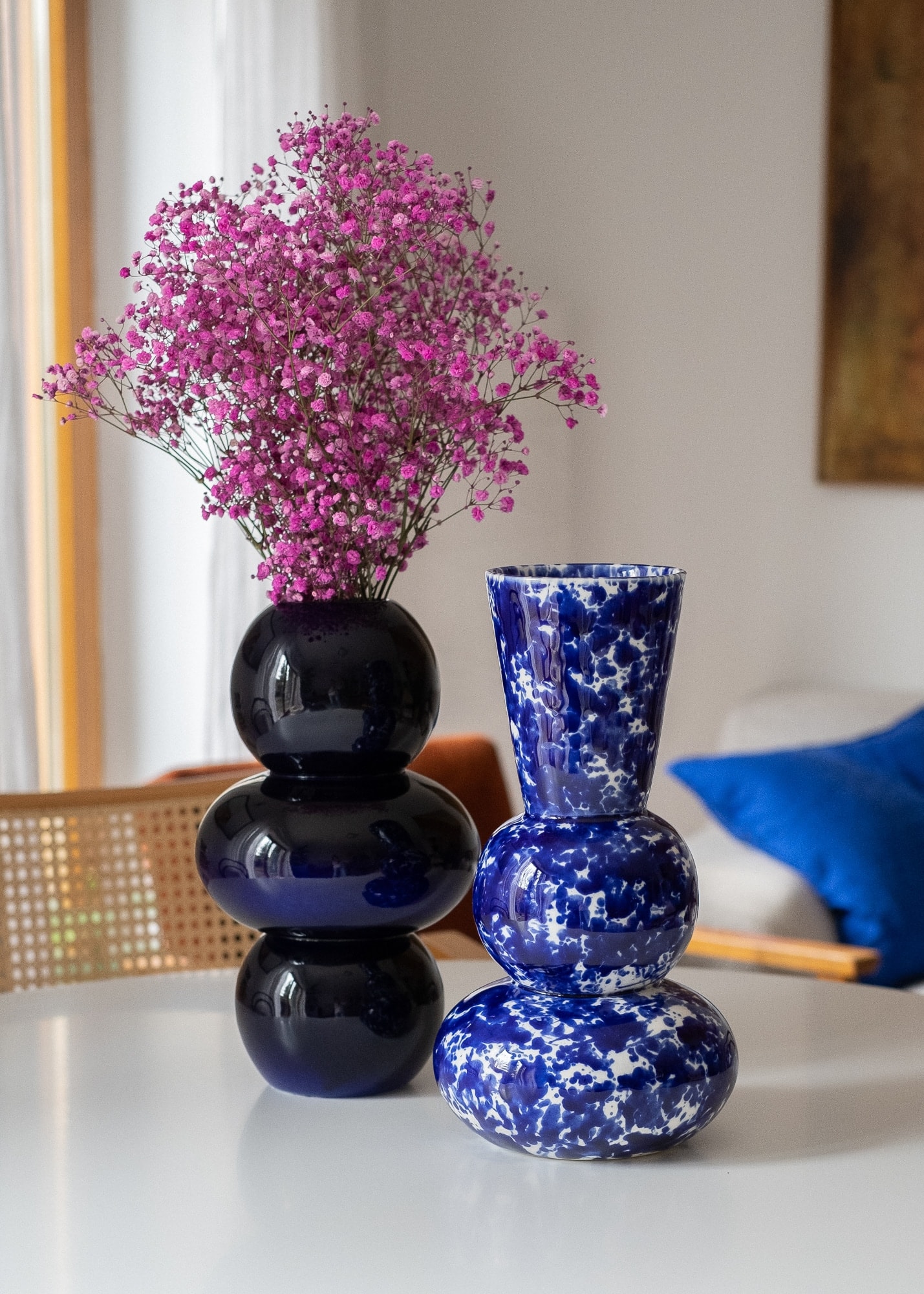 Ceramiczny wazon z po艂膮czonych ze sob膮 geometrycznych element贸w. Wykonany z porcelany.